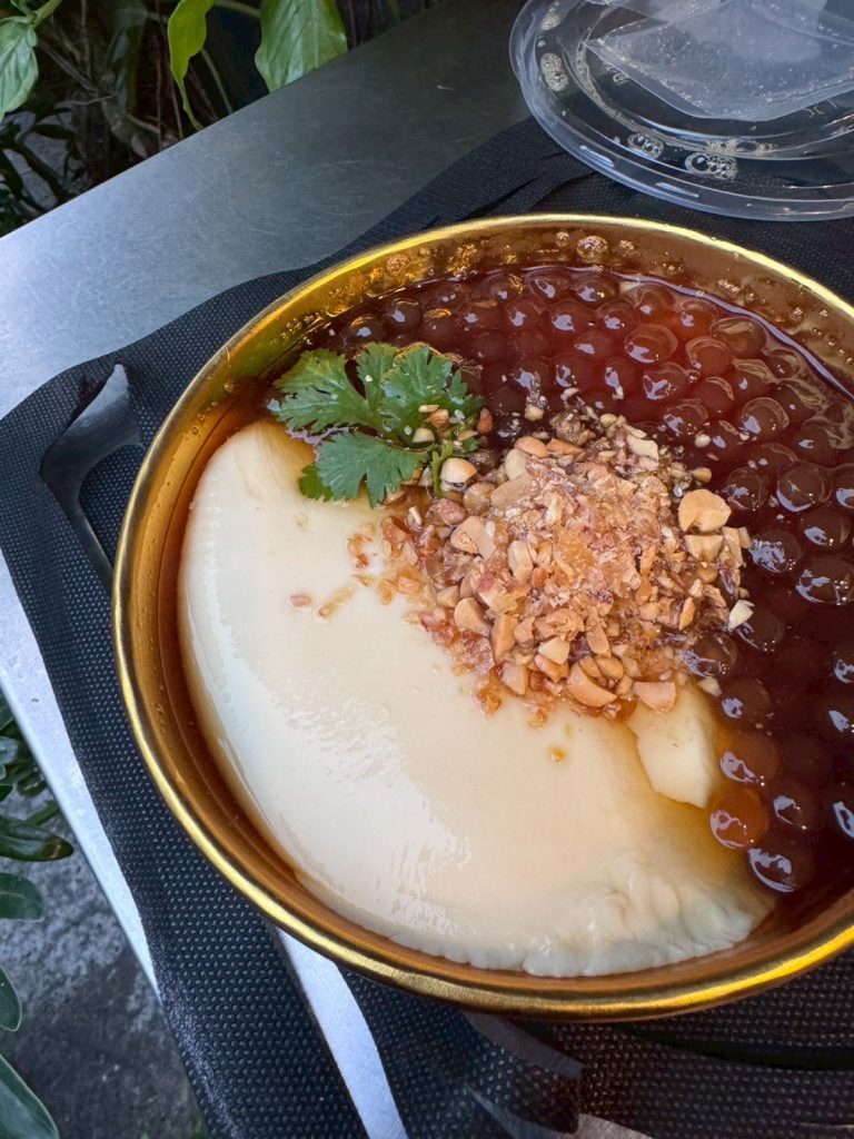 絹ごし豆腐よりさらに柔らかく、つるんとした食感が特徴で、シロップをかけてタピオカや小豆、芋圓(芋の団子)などをトッピングして食べます。