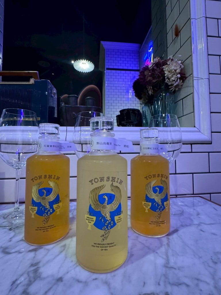 色々な種類のお茶を、香りが楽しめるようワイングラスでいただきます。